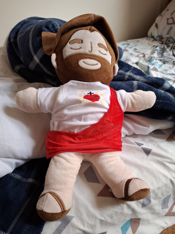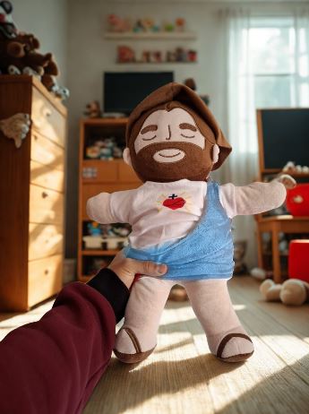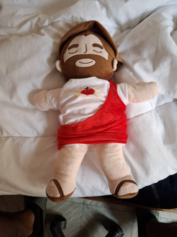 Desde que le regalé esto a mi hijo, ya no pide que me quede en su cama hasta que se duerma. Dice que el peluche de Jesús lo arrulla. Es suave y la vibración es tan relajante, que creo que me voy a comprar uno para mí. ¡Funciona mejor que cualquier luz nocturna.